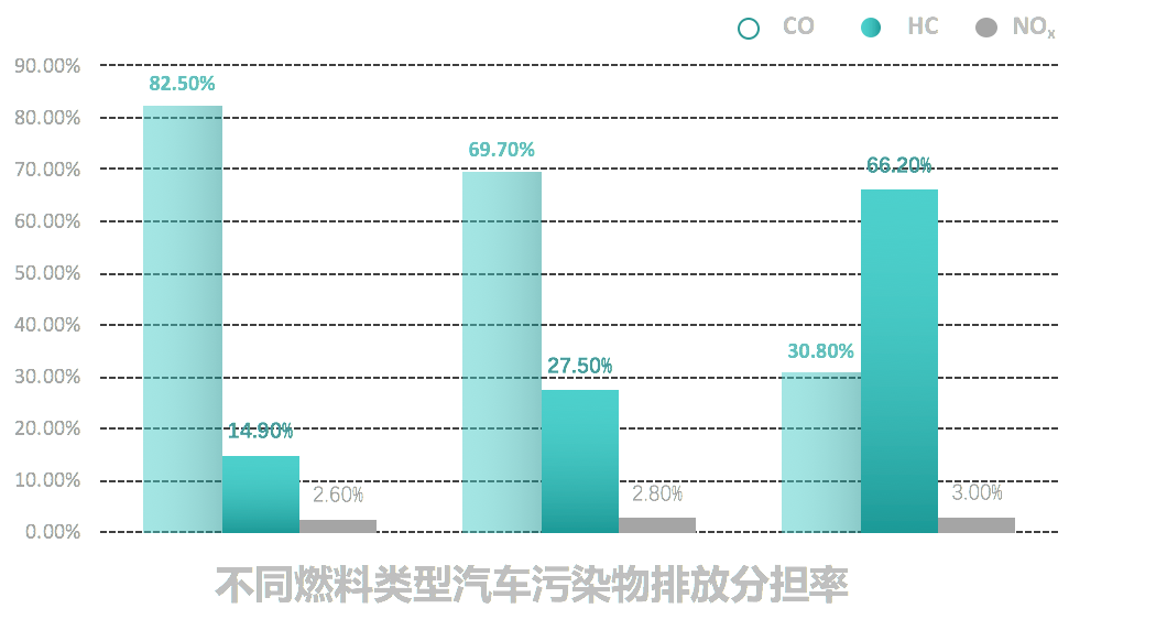 汽车是污染物的主要贡献者:其排放的NOx和PM超过90%,HC和CO超过70%。尾气排放是造成灰霾、光化学烟雾污染的主要原因。